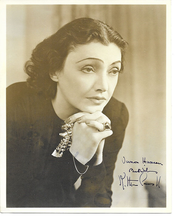 CORNELL. Katherine (1893-1974). American stage actress, writer and theatre owner. Called “The First Lady of the Theatre.” Vintage photograph, 8”x10” head and shoulders pose, clasping her hands and looking a bit sad. Inscribed and signed: “Vernon Hansen Best Wishes Katherine Cornell.” In fine condition...........$125.00![]() |