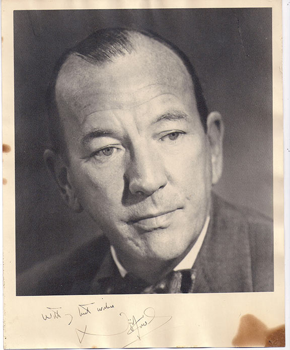 COWARD, Noel (1899-1973). English actor, playwright and composer. Photograph, 8”x10”, B&W, close up full face pose. Signed on the bottom light margin with a three word sentiment. Small brown stain on the bottom right corner away from the writing and signature otherwise a very nice example.....................................$375.00![]() |