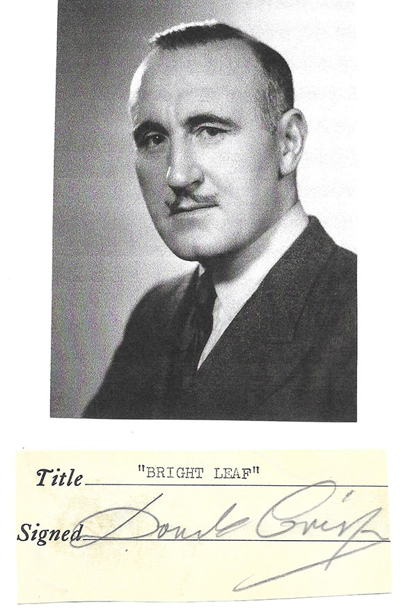 CRISP, Donald (1882-1974) London born actor, director, and writer. He was on the screen from 1908 to 1963). He appeared in three Oscar winning films for Best Picture. He won an Oscar for Best Supporting actor (1942). Choice, early pencil signature on a slip with the word “Title” and “Bright Leaf.” This 1950’s film he appeared with Gary Cooper. Fine condition.......87.50 |