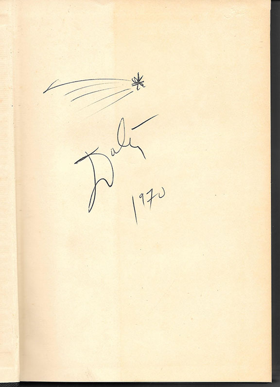 DALI, Salvador (1904-1989). Spanish surrealist painter. Best known for his striking and bizarre images. His book “Hidden Faces” Dial press, New York, 1944, First Edition. Four hundred fourteen pages, very good copy with dust jacket. On the front free endpaper Dali has signed his name and dated it “1970”. In addition he has sketched a shooting star..............................SOLD