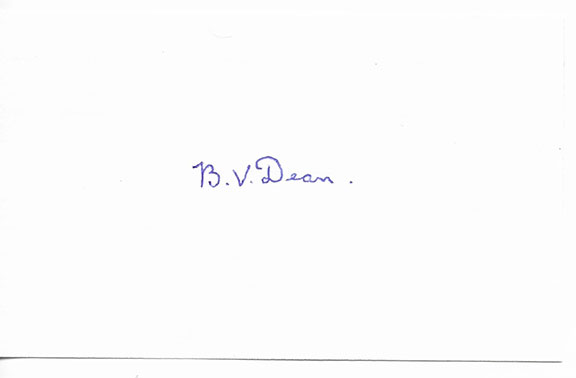 DEAN, B(ertram) V. (1910-1992). Third Class child passenger on the R.M.S. Titanic. Rescued by Lifeboat #13. Died on April 14, 1992, exactly 80 years to the day after the Titanic struck an iceberg. Choice signature on a 3”x5” card. Notation on verso states this signature was signed August 17, 1990. In excellent condition.....................$95.00![]() |
