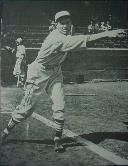 Magazine portrait of Dean throwing a pitch. Measures appx. 5.5 in. by 4.5 in. Signed in full on his leg. Very nice contrast and would frame well. $195.00