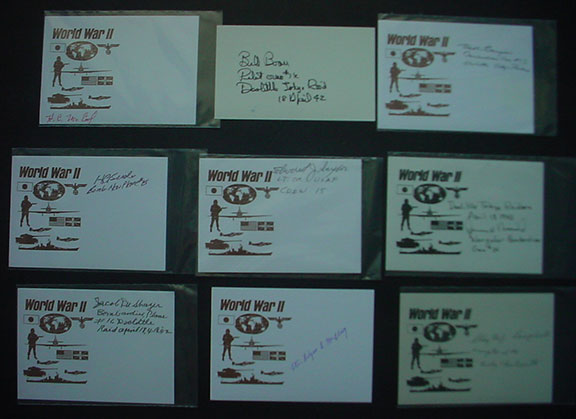 Most of the cards are collector’s WWII cards. Many of the airman have added additional information such as their crew number and date of the raid. A wonderful collection of signatures. In excellent condition.................. $375.00