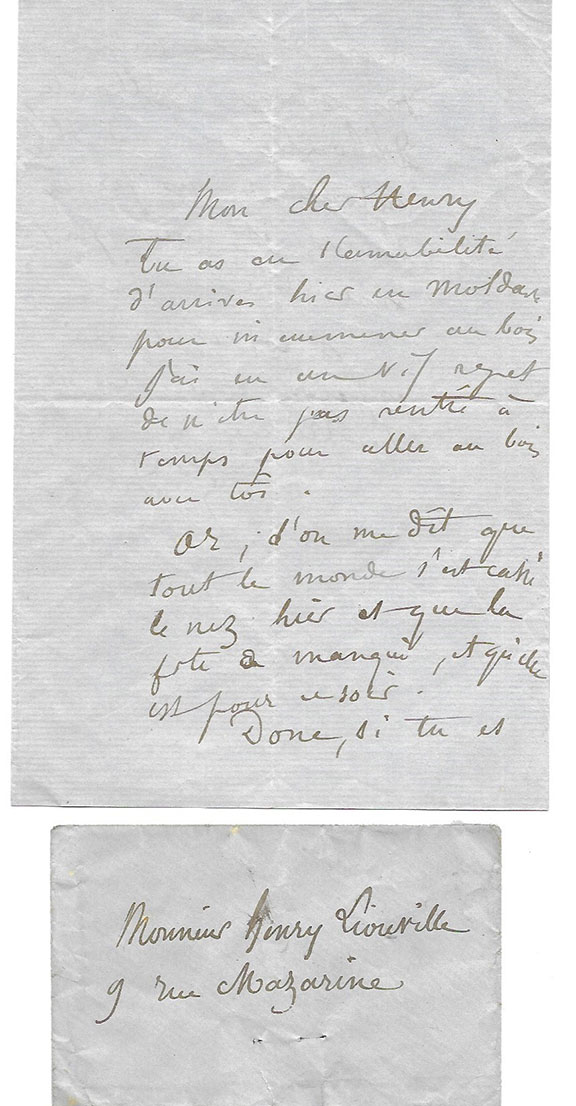 DORE, Paul Gustavo (1933-1883). French painter and illustrator of the classics such as the works of Dante, Cervantes, Tennyson, Balzac, etc. Autograph letter signed, two pages, no date, in French. Not translated, boldly signed and comes with the original envelope...................$425.00![]() |