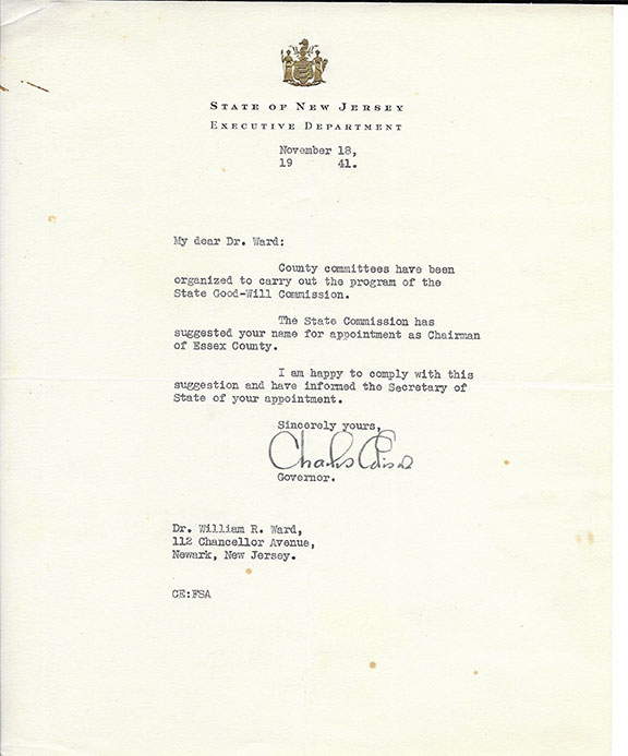 EDISON, Charles (1890-1969). Politician, inventor, actor. U.S. Secretary of the Navy, 42nd Governor of New Jersey. Typed letter signed as Governor of New Jersey, Nov. 18, 1941 re an appointment as Chairman of Essex County of New Jersey. In V/G condition.......................$37.50![]() |