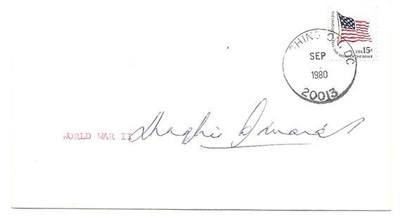 EDWARDS, Hughie (1914-1982). Twenty-third Governor of Western Australia. Air Commodore, Senior Officer of the Royal Air Force. Australian recipient of the Victoria Cross, the highest decoration for gallantry in the face of the enemy. Edwards led a bombing raid on Bremen, Germany, Cover postmarked Washington, D.C. Sept. 1980. Boldly signed “Hughie Edwards.” In fine condition..........................$37.50