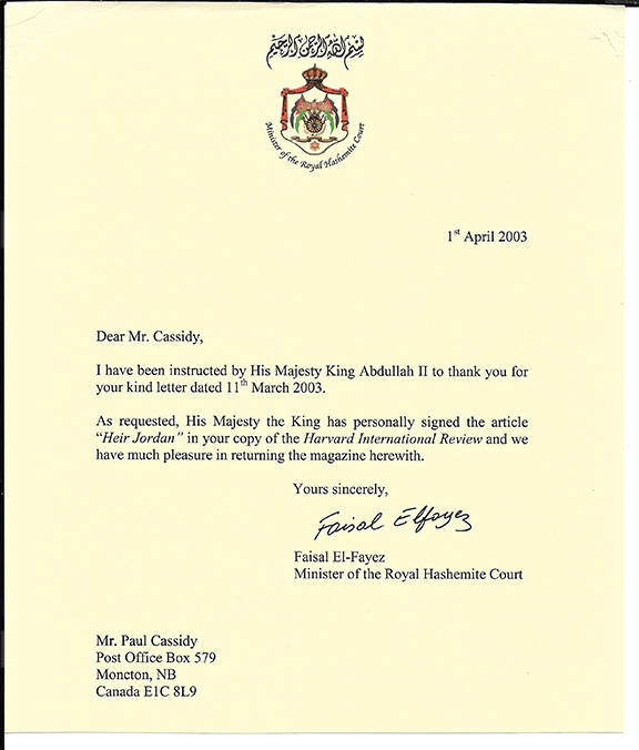 FAISAL El-FAYEZ  (1952-   )  Prime Minister of Jordan (25 Oct. 2003- 6 April 2005). Resigned. T.L.S. as Minister of the Royal Hashemite Court, 1 April 2003 stating His majesty the King has signed a magazine........