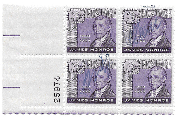 ERHARD, Ludwig (1897-1977). Chancellor of the Federal Republic of Germany (1963-66). He is famous for leading what is known as the economic miracle. Plate block of four U.S. James Monroe stamps. Signed across the stamps by Ludwig Erhard. Together with his calling card containing a brief typed message................SOLD![]() |
