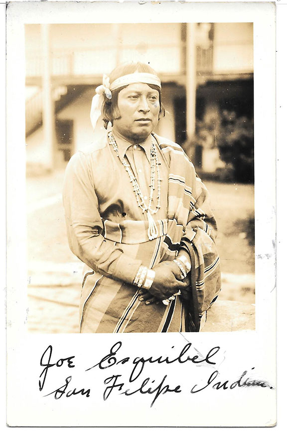 San Felipe Indian. Postcard photograph, B&W, in full dress boldly signed in ink on the lower clear margin................