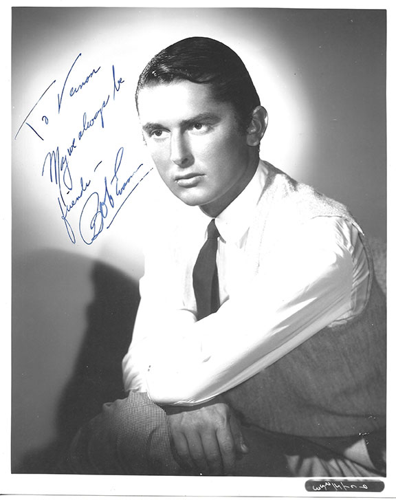 EVANS, Robert (1930-2019). American actor, film producer and studio executive. He worked on many movies including, Rosemary’s Baby Love Story, Chinatown and The Godfather. His career turned south when he pled guilty to cocaine trafficking. He was married seven times. Vintage photograph, 8”x10”, B&W, half length pose looking serious. Inscribed and signed: “To Vernon, May we always be friends- Bob Evans.” In fine condition. From the Vernon Hansen collection...........................$125.00