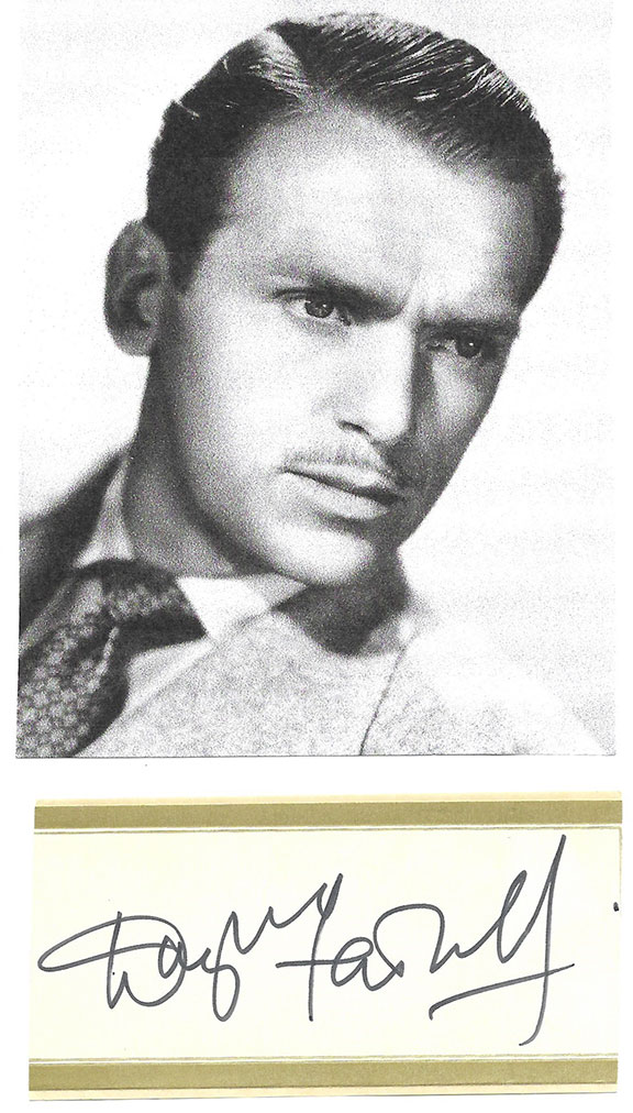 FAIRBANKS JR, Douglas (1909-2000) American actor, producer, and decorated officer in WWII. Appeared in 100 films and TV shows. Known for his appearance in “Gunga Din” (1939). First President of the Academy Awards. He was awarded an Honorary Award by the Academy (1940). Choice signature on a label with gold trim edges. Nice for framing.......................$24.50 |