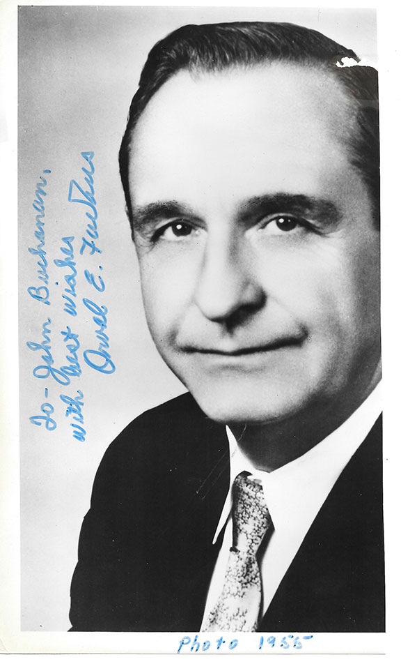 Photograph was 8”x10”, black and white, trimmed. Head and shoulders pose inscribed along with a sentiment and signed. Signed portraits of Governor Faubus are not common.................................$37.50