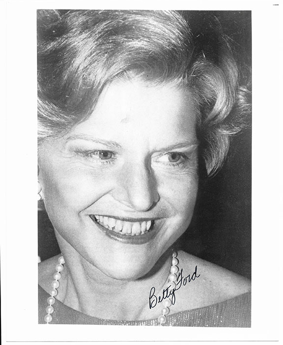 FORD, Betty (1918-2011). First Lady of the United States (1974-1977), Served as Second Lady of the United States (1973-1974). She was awarded the Presidential Medal of Freedom by G.H.W. Bush in 1991. S/P, B&W, 8”x10” full face pose, smiling. Signed with excellent contrast. In very fine condition........$67.50![]() |