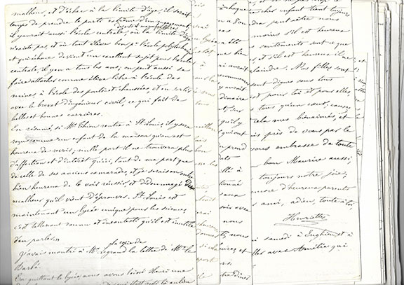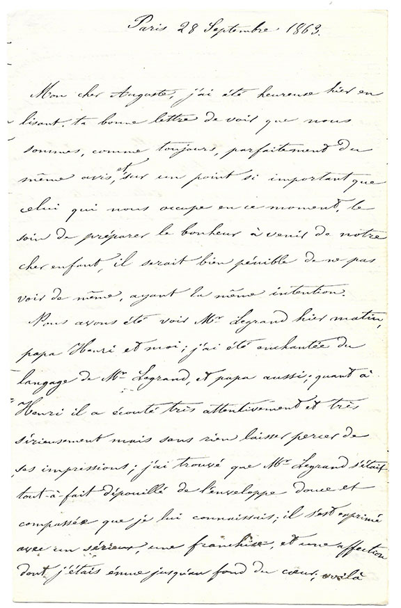 Archive of 61 extremely long autograph letters signed, January thru September 1863 from Henrietta Baumes-Thion and Antoine Baumes. Letters are describing life in France during the America Civil War. Unread and unresearched. Three letters had stamps cut from them otherwise in fine condition. Writing is quite small on most.........$450.00
