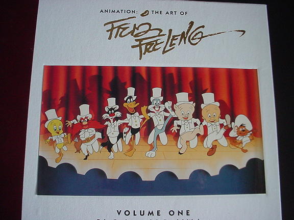 Marvelous two volume set of books, boxed. Animation: The Art of Friz Freleng, Donovan Publishers, 1994. Vol.#1, 240 pages, illustrates pictures and stories about the life of Friz Freleng in animation. The spine is in leather and this is copy #379/4000 copies signed by Friz Freleng on a page which contains a hologram of the Warner Brothers characters. Second volume also with a leather spine contains a VHS and tape cassette. Both volumes are contained in a protective leather bound slipcase. The books are housed in the original publisher’s special packaging and box. This limited edition set originally sold for $1,400.00 in Warner brother’s stores ........ $375.00