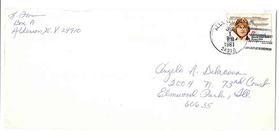 FROMME, Lynette (1948- ) Member of the Manson Family best known as “Squeaky Red”. She appeared with her head shaven for his trial. She received a life sentence for her attempt to assassinate president Gerald R. Ford. She aimed a 45 caliber gun at Ford on the grounds of the California State Capitol on Sept. 5, 1975. A Secret Service agent grabbed the weapon before it could be fired. Fromme became a bizarre symbol of counter-culture terrorism at her 1975 arraignment trial. Clad in bright red she was repeatedly ejected from the court room and at her sentencing she hit the prosecutor with an apple. Fine, legal size envelope hand addressed by Fromme. U.S. 28 cent Air Mail stamp postmarked July 1, 1981. She has signed her name in the upper left corner of the envelope and adds her return address................$85.00