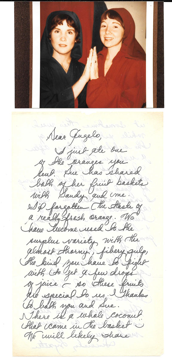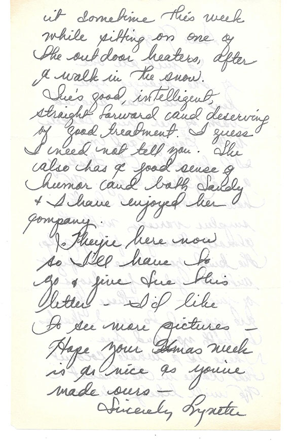 FROMME, Lynette “Squeaky Red.” (1948- ) Member of the Manson family in the late 60’s and early 70’s. She attempted to assassinate President Gerald R. Ford (1975) becoming the first woman in history to directly try to kill one of our presidents. She aimed a 45 caliber pistol at Ford on the grounds of the California State Capitol. A secret service agent grabbed the weapon before it could be fired, Ford was not harmed. Fromme became a bizarre symbol of counter-culture terrorism at her 1975 arraignment and trial. Clad in bright red she was repeatedly ejected from the court room. She appeared with her head shaven. During her sentencing, she hit the prosecutor with an apple. She received a life sentence but was paroled in 2009 after 34 years. Autograph letter signed, two full pages, in ink, signed “Lynette” as usual. In part: “Sue has shared both of her fruit baskets with Sandy (Blue) and me. I’d forgotten the taste of a really fresh orange....she also has a good sense of humor and both Sandy and I have enjoyed her company. They’re here now so I’ll have to go and give Sue this letter, I’d like to see more pictures... Hope your Xmas week is as nice as you’ve made ours.” Together with a fine snap shot of both Red & Blue together..................SOLD