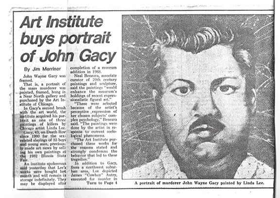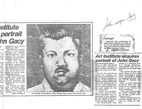 GACY, John Wayne #23. (1942-May 10, 1994). American serial killer who is also known as the “Killer Clown”. He was convicted of sexual assault and murder of at least 33 teenage boys and young men. The killings took place between 1972 and 1978 in the Chicago area. Twenty-six of Gacy’s victims were buried in a crawl space under his home. Three others were buried on his property and the last four were dumped in the Des Plains River. Gacy was convicted of the 33 murders and sentenced to death for 12 of them. He spent 14 years on death row before being executed by lethal injection. Actual page from Gacy’s personal files, kept in his cell that he signed just a day or two before his execution. He is also known for his statement of saying he was only guilty of running a cemetery without a license. His execution was without question a media sensation. Copy of a newspaper article about the Art Institute of Chicago purchasing a portrait of murderer John Wayne Gacy. Signed in full, John Wayne Gacy. Two file holes otherwise in fine condition ..................SOLD