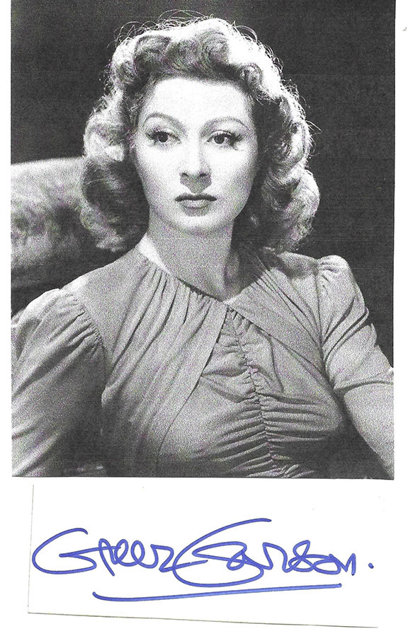 GARSON, Greer (1904-1996) English actress who received 6 Academy Award nominations. She won an Oscar for her performance in Mrs. Miniver (1942). Choice, bold signature on a slip.......$30.00