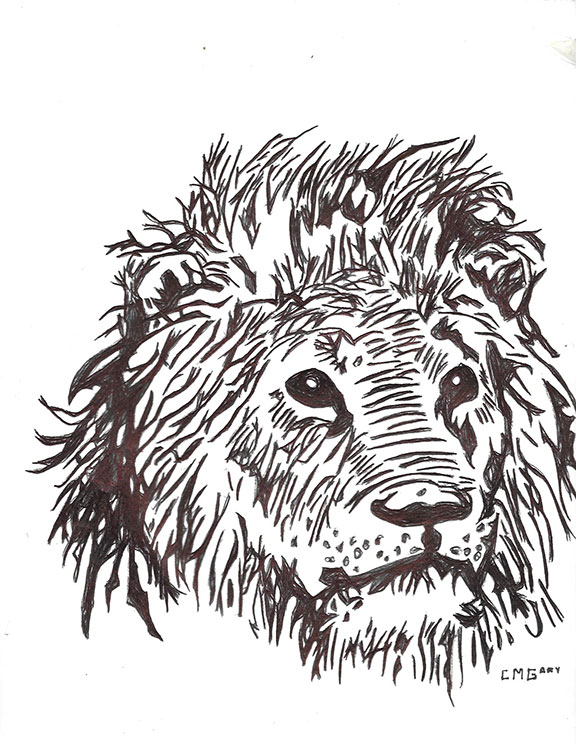 Original portrait of a lions head accomplished in black ink. Measures `9”x11.75” on heavy paper. Signed “C.M. Gary.” Fine quality and ready for your favorite frame...........................$125.00