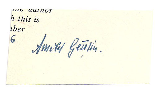GENTHE, Arnold (1869-1942). Photographer and author. Very scarce signature, removed from a limited edition of one of his books. A signature that is seldom offered in any form.................$150.00