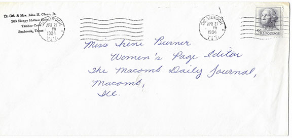 GLENN, John (1921-2016). One of NASA’s original seven astronauts and the first U.S. astronaut to orbit the earth on Feb.20, 1962. His flight on the Friendship 7 orbited the earth three times. Glenn was a U.S. Senator which lasted four terms. T.L.S. on The Glenns, Seabrook, Texas letterhead. No date but circa early 1964. In part: “...with mail arriving up to 600 letters per day... you can appreciate our family dilemma. No matter how good our intention, we cannot write a personal reply to each letter. “....I am at home but must return to the hospital periodically for checkups. My doctors are the finest, and the various treatments which people have been kind enough to suggest or share with me have been referred to them for evaluation and consideration. It helps a lot to know of the many prayers and religious activities on my behalf and I sincerely appreciate your thoughtfulness. My recovery from the “clout-on-the-head” has been just about as the doctors forecast, slow but steady, with the outlook for 100% recovery still several months away, at best. It is disgustingly slow business, but a short stay in the hospital does wonders to change an impatient outlook on things. I am just thankful my injury is probably only a temporary setback for there are so many people I met with more serious and permanent problems. We need to have faith that things seem to work out OK in the long run. It could have been far worse, even though it did come at a most inconvenient time. Meanwhile, back at the bathroom, watch those sliding throwrugs. They’re rough! Very boldly signed “J.H. Glenn, Jr.”