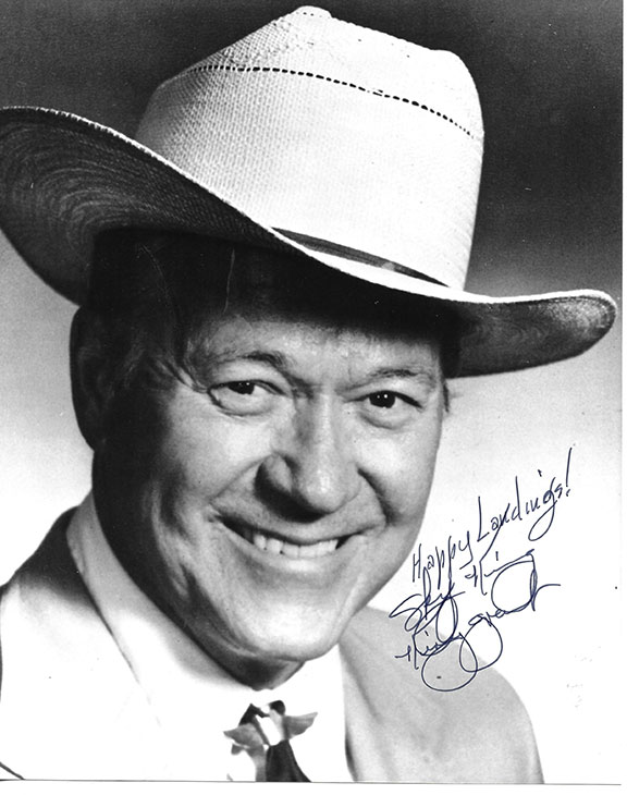 GRANT, Kirby - Sky King (1911-1985) American actor, best known for his role as “Sky King” on television. His life was cut short due to a car accident. Uncommon B&W photograph, 8”x10”, head and shoulders pose smiling. He has written: “Happy Landings! Sky King, Kirby Grant.” In very fine condition...............$125.00