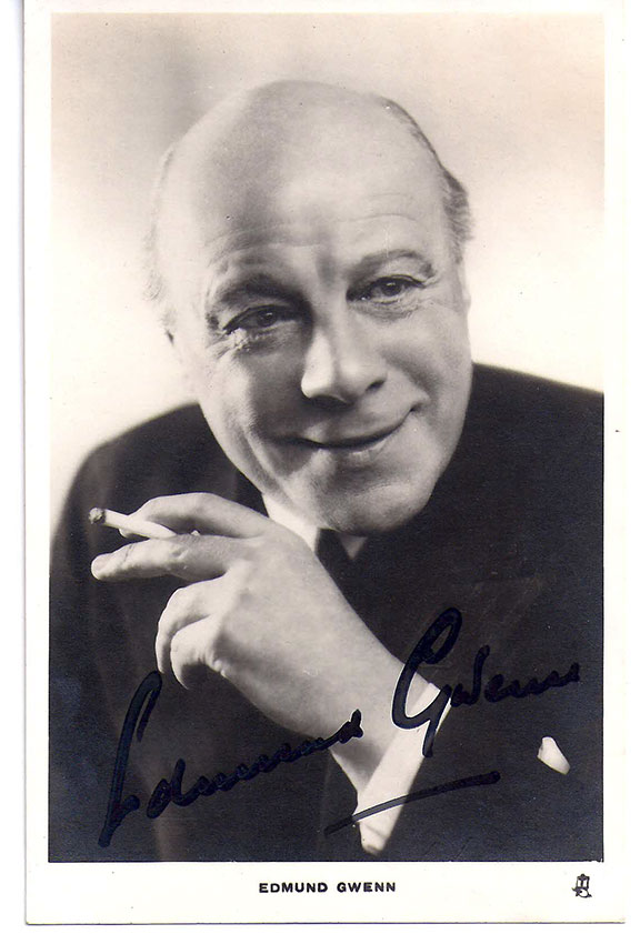 GWENN, Edmund (1875-1959). British stage actor, best remembered for his role in the 1947 classic Miracle On 34th Street for which he won an Oscar. Wonderful, choice vintage postcard photograph, head & shoulders pose, full face and smiling. He has signed this photograph with a very bold signature. A very nice example................ $145.00 |