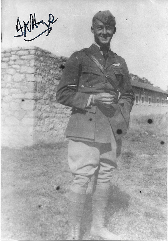 HAYS, Frank K. American fighter pilot in WW1. Ace credited with 6 victories. One of the last American Aces of WW1. Photograph, 5”x7”, B&W, full length pose in uniform standing near barracks. Boldly signed in the light area of the sky. Not common in signed photographs................$165.00![]() |