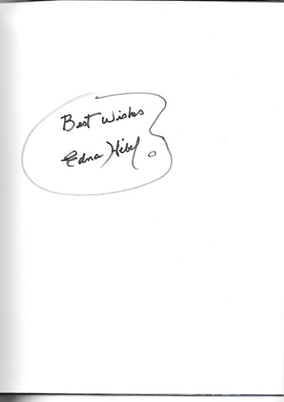 HIBEL, Edna (1919-2014). American painter known for her impressionistic landscapes and Mother of Children series. Inspired by Mary Cassatt and Renior. In 1940 she was the youngest artist at the time honored by a major American museum. Her works have been exhibited in prestigious museums, galleries and palaces around the world. Her fabulous book: “Hibel, The Life and Art of Edna Hibel.” Star Group, 2006, First Edition, two hundred sixty-six pages, heavily illustrated, many in color. On the front free endpaper Hibel has drawn a palate and inside the palate she has written: “Best wishes Edna Hibel.” A fabulous art books in fine condition with the dust jacket. Because of the sketch, this is most likely one of a kind. Sketch and writing “in person.”.........$195.00