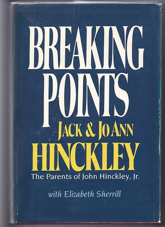 HINCKLEY, Jack & JoAnn Parents of John Hinckley, Jr. Hinckley, Jr. born 1955 attempted to assassinate U.S. President Ronald Reagan on March 30, 1981 in an effort to impress teen actress Jodie Foster. The book Breaking Points by Jack & JoAnn Hinckley, 1985, First printing, 375 pages. Inscribed to their Governor: “ To Governor and Mrs. Lamm, with our sincere thanks for your concern and support Jack and JoAnn”. Affixed to the inside cover is a 3”x5” card signed “John Hinckley, Jr.” and a bookplate signed by “Ronald Reagan”. A Rare item, one ofa kind........$695.00