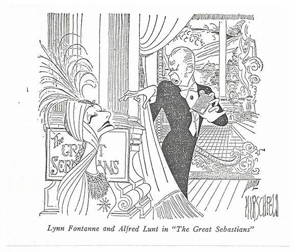 HIRSCHFELD, Al (1903-2003). American caricaturist best known for his B&W portraits of celebrities. He influenced countless artists. Printed cartoon 4”x5” of Lynn Fontanne and Alfred Lunt signed in print by the artist. Below his printed signature he has signed his name in ink. Fine condition.....................$67.50![]() |