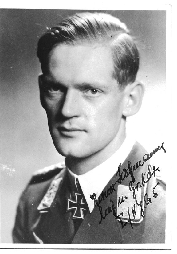HOFFMAN, Werner  (1918-2011). German night fighter pilot. Awarded the Knight’s Cross of the Iron Cross. Credited with 52 victories, 51 at night. Scarce photograph, 4"x6” head and shoulders pose in uniform. Boldly signed and adding his rank and unit number. Fine condition......................$55.00