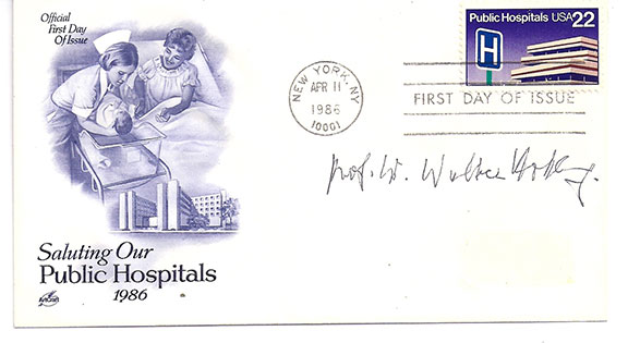 HOHLWEG, Walter (1902-1992). German scientist who discovered sexual hormones in 1938. The Walter Hohlweg Prize is awarded biennially by the German Society for Gynecology and Obstetrics. Fine, scarce signature as “Prof. Walter Hohlweg” on a Saluting Our Public Hospitals First Day Cover. Public Hospitals 22 cent stamp canceled New York, April 11, 1986............ $37.50