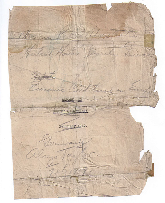 Title page of a report: Report On Survey Of Germany, February 1919. Hoover writes in pencil on this page: “American Relief Administration, Herbert Hoover, Director General. Report Economic Conditions in Europe, Germany, Alonzo Taylor, Feb. 1919”. On a brown sheet of paper Hoover starts a RARE handwritten letter: “Colonel Groome, you can state at once and emphatically that if executions do not instantly cease and if tribunals are not at once set up to determine are trying all prisoners are not set up instantly are not set up”. It is quite obvious that Hoover had much difficulty composing this letter and getting his thoughts together, he has crossed out about 19 words. In November 1918 Hoover was appointed Director-General of Relief & Reconstruction of Europe. All of Europe faced famine, Hoover’s organization of 4,000 American workers spent time in 30 countries distributing 46 million tons of food from 1918 to 1920. World War I ended on November 11, 1918. In 1919, Hoover founded the Hoover Institute On War, Revolution & Peace. During 1919 Hoover had worked closely with Alonzo Taylor who was his principal expert advisor on food and nutrition questions during and immediately after the war, in drawing up a plan for the organization and funding of a Food Research Institute at Stanford. Colonel Groome was the First Commissioner of the Pennsylvania State Police and a warden in the Eastern State Penitentiary. In 1917, he was part of a group to organize divisions for immediate service for the Great War. During the War he headed the American Military Police overseas. A very early and important Hoover War related item. The title page is worn and the areas where once split are strengthen with tape. The Hoover letter is strengthened in places with tape and is rough around the edges...............................$1500.00 ![]() ![]() |
