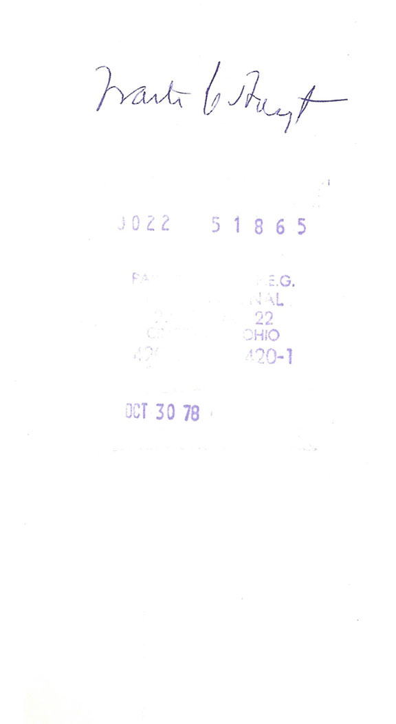 HOYT, Waite (1899-1984). American professional baseball player who pitched in seven world series. Inducted into the Baseball Hall of Fame. His personal check, Oct. 28,1978 accomplished in his hand and made payable to himself for $50.00. Also countersigned on the verso. Signed three times. V/Fine condition......$165.00 |