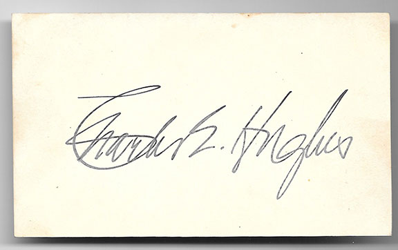 HUGHES, Charles E. (1862-1948). Appointed by President Taft Associate Justice of the U.S. Supreme Court in 1910. Republican presidential nominee (1916). U.S. Secretary of State (1921-1925). Appointed Chief Justice of the U.S. Supreme Court by President Hoover (1930) and he held this position until 1941. A choice signature on a nice clean card........... $75.00 |