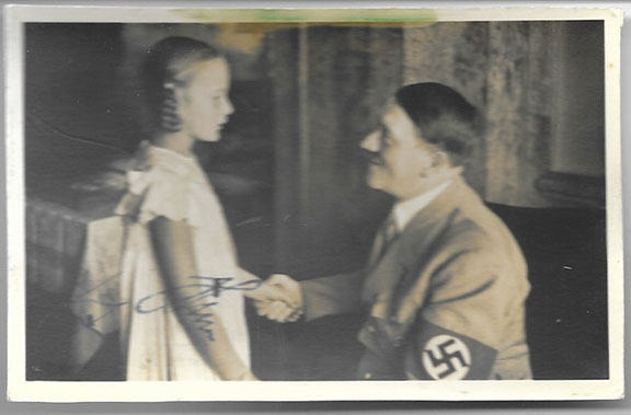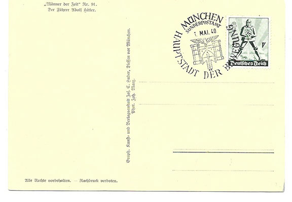 HITLER, Adolf (1889-1945). German politician, leader of the Nazi Party. Chancellor of Germany (1933-1945). Fuhrer of Germany (1934-1945). He initiated WWII in Europe. Committed suicide in his Berlin bunker by a gunshot to his head. He was only 56 years old. Our latest Limited Edition Collector’s card. Card 8, in Series #3 of 100 numbered and hand signed collector’s cards created by Stephen Koschal. A very attractive card stock card measuring 8.5”x11”, printed in color and contains a strand of hair from Hitler’s sterling silver, monogrammed hair brush. In mint condition and rare.