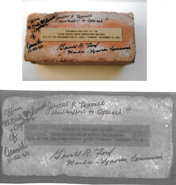 f) A photo of Steve Koschal holding this piece of brick outside Hoa Lo Prison.
