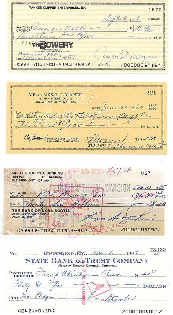 We accept personal checks, money orders and cash in U.S. Dollars or in Euros. We also accept PayPal.
