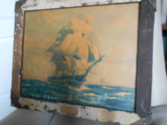 c) A fabulous piece of art, measuring 8”x10” in color of the entrance to Hoa Lo Prison made entirely of grains of rice. Attractively framed. A museum piece.