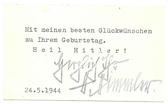 DONITZ, Karl (1891-1980). German Grand Admiral, commander of the U-Boat fleet. On May 2, 1945 Donitz succeeded Hitler as Reich Head of State and Supreme Commander of the Armed Forces. He ordered Alfred Jodl to sign the German Instrument of Surrender in Rheims, France. Donitz signed the Allied terms for Nazi Germany’s unconditional surrender on May 8, 1945. Donitz was found guilty of crimes against peace and served 10 years in prison. Donitz is best remembered for his 23-day term as president of Germany after Hitler’s suicide. Typed document in English signed, “Announcement To The German People, May 1, 1945. The Fuehrer has nominated me as his successor. In full consciousness of my responsibilities, I therefore assume the leadership of the German people at this fateful hour. My first task is to save German men and women from destruction by the advancing Bolshevist enemy. It is to serve this purpose alone that the military struggle continues to impede the accomplishment of this task, we must also continue to fight and defend ourselves against them. The British and the Americans in that case will not be fighting in the interests of their own peoples, but solely for the expansion of Bolshevism in Europe.” Typed on parchment style paper, a wonderful souvenir of this WWII historical document from a man who surrendered his country. Documents of this type are rarely seen on today’s market especially with the desirable full signature of Karl Donitz. In V/F to Mint condition. $1275.00