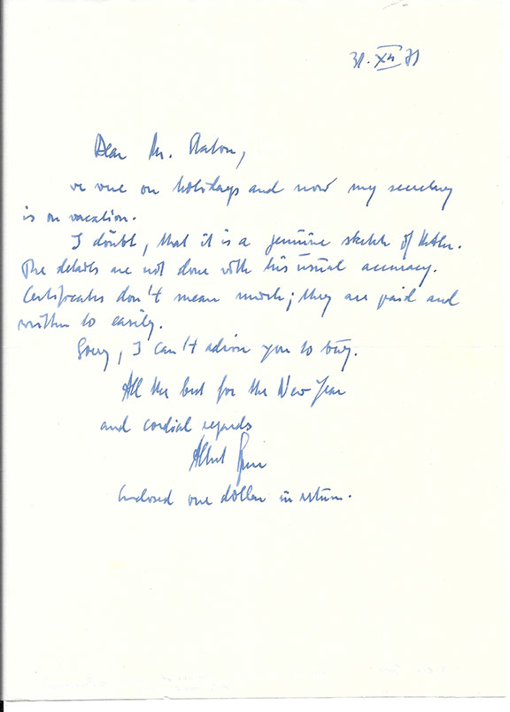 Very Desirable A.L.S. with Original Very Rare two sketches