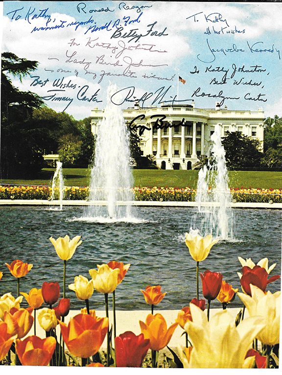 NIXON, Richard, FORD, Gerald, CARTER, Jimm, BUSH, George and REAGAN, Ronald. Very attractive lithograph, in color of The White House and its gardens filled with tulips and a fountain. Signed in print by the noted and prestigious artist Paul N. Norton. His paintings can be found in The White House, U.S. Capitol, and Iowa’s Governor’s Mansion and more. He is remembered as a “Master of the Familiar.” In addition, he created the logos for Dairy Queen and Pella Windows. He painted over 500 watercolors, and many were reproduced by the thousands for the public eager to own his artwork. In 1981, he had an audience with Ronald Reagan while presenting the original watercolor of this lithograph. Measures appx. 18”x24” signed by the five presidents with full signatures. Some light wrinkling in the clear left and right margins that can be either matted out or steamed out. There is plenty of room for more signatures. A quite impressive item.