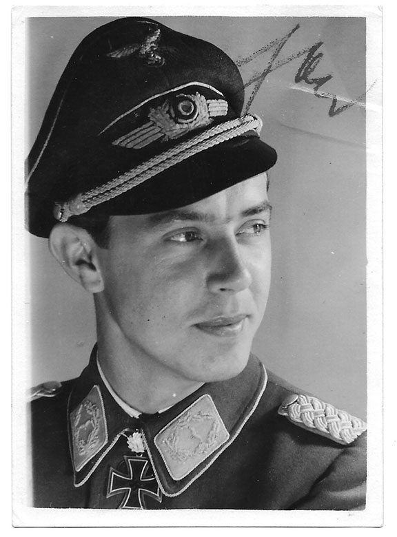 JABS, LT. Col. Hans-Joachim (1918-2013) was a former German Luftwaffe fighter ace and recipient of the Knight’s Cross of the iron Cross during World War II Seeger scored 56 victories in 504 missions. All his victories were recorded over the Western front and included eight four-engine bombers. Photograph 3.25”x5”, head and shoulders pose in uniform. Signed on the lower white margin and once again on the verso................................$85.00 |