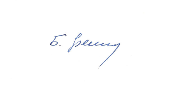 JEREMIN, Boris Russian fighter pilot, WWII. Hero of the U.S.S.R. Ace credited with 24 victories. Claimed more on May 10, 1945, but the war was over. Choice signature on a 3”x5”, dated in his hand “19.02.88.” Uncommon signature..$95.00 |