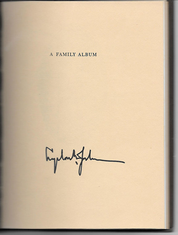 JOHNSON, Rebekah Baines Her book: “A Family Album” McGraw-Hill Co.1965, First Edition, so stated. Introduction by Lyndon Baines Johnson. One hundred forty-six pages, heavily illustrated. In fine condition with a very good dust jacket. Signed copies of this book are quite scarce. It is believed that Johnson only signed copies for family members and very close friends. Believed to be signed “as President.”..................................$450.00