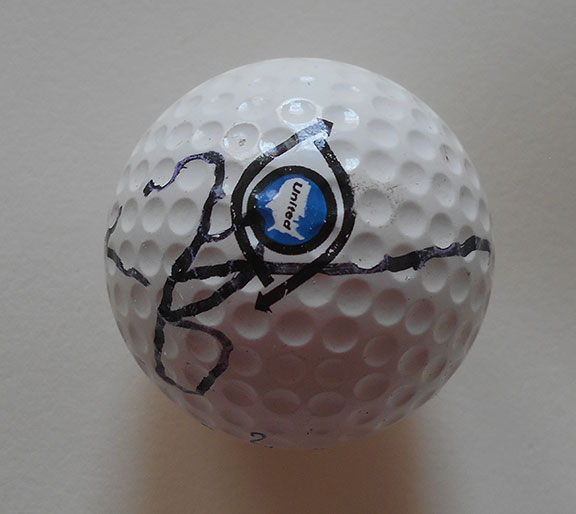 JORDAN, Michael (1963-  ) Former professional basketball player. Played 15 seasons in the NBA winning six championships with the Chicago Bulls.  Official United Van Lines golf ball #2 made by MacGregor.  Hand signed with a black ink Sharpie Pen by Michael Jordan across the United Van Lines logo. Golf is one of Jordan's favorite hobbies.  remarkable full signature In fine condition