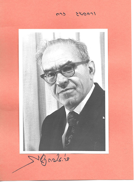 KAHANA, Rabbi Kalman (1910-1991). Leader of the Po’Alei Agudat Israeli movement. Founding member of the Kibbutz Hafetz Haim and a member of the Knesset 1949-1981. Signer of the Israeli Declaration of Independence. Photograph, B&W, 5”x7” and affixed to a mount. Overall size 8”x10.5”. Very boldly signed on the lower mount in Hebrew. Of the 38 signatures on the Scroll, only 37 are identified. Of the 37, only two are available in signed photographs, David Ben-Gurion and Golda Meir. All the rest are basically unavailable. This is the first and only one we have seen signed by Rabbi Kahana. In very fine condition..................................$165.00