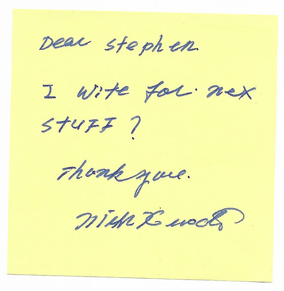 KAWATO, Masajiro (1925-2008). Japanese Zero Pilot, who had 19 kills and suffered 17 wounds. During his lifetime was regarded by many as Japan’s greatest WWII Ace. He downed the Black Sheep Squadron’s leader Pappy Boyington on Jan. 3, 1944. Boyington was picked up by a Japanese Submarine and was held a prisoner until war’s end. Autograph note signed in English: “Dear Stephen I write for nex stuff?” Thank you, Mike Kawato.” Written on a sticky note, in fine condition..................$35.00